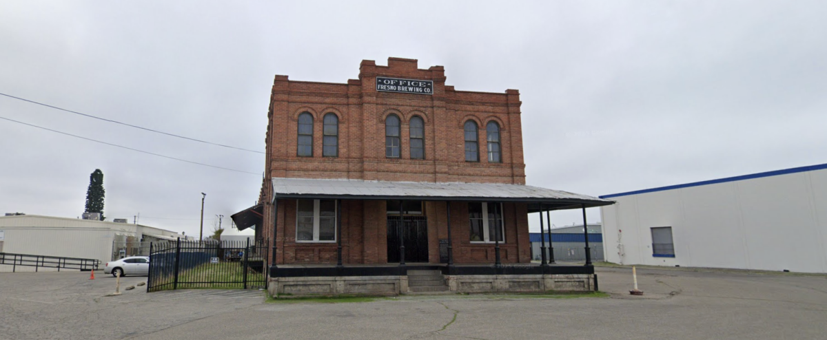 The Fresno Brewery Office Building was built in 1907 as part of the Fresno Brewing Company complex. The brick office and warehouse was once a 20-acre brewery operation that had over 1,000 employees across the Central Valley before Prohibition reshaped the industry.