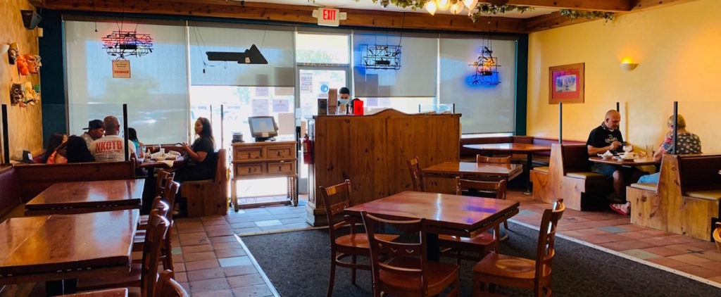 Madera is the only Central Valley county allowed to have open dining rooms, such as the Sal’s Mexican restaurant with socially distant tables and partitions between booths. Image via Sal’s