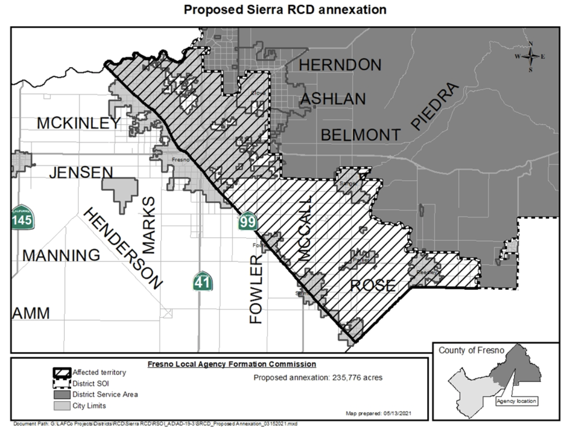 2. Sierra Resource Conservation District “Sierra Resource Conservation District Annexation” a proposed annexation of approximately 235,776 acres to the Sierra Resource Conservation District. (see map of affected territory at www.fresnolafco.org under hearings and workshops tab) (LAFCo File No. AD-19-3)