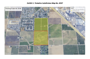 Planning Project No. 25-44: Planning Project No. 25-44 consists of Tentative Parcel Map (TPM) No. 2025-45, Vesting Tentative Subdivision Map (VTSM) No. 6537, a prezone request, and a request to annex the subject property to the City of Fowler (Project). The Project proposes the subdivision of an approximately 38.35-acre parcel (Assessor’s Parcel 345-100-05), located at the northwest corner of South Fowler Avenue and East Parlier Avenue (Project site). The site is designated Medium Low Density Residential by the City’s General Plan and is zoned AE 20 (Exclusive Agriculture) by the County of Fresno. As a part of the Project, the Project site would be annexed to the City of Fowler and would be prezoned to the City’s R-1-6 mapping designation, with an implementing zone district of R-3 (Medium Density Residential). TPM No. 2025-45 would subdivide the property into two parcels of approximately 16.73 and 21.62 acres. VTSM No. 6537 would further subdivide the two resulting parcels into 179 single family residential lots, as well as a linear park along the Project site’s northern and western boundary.