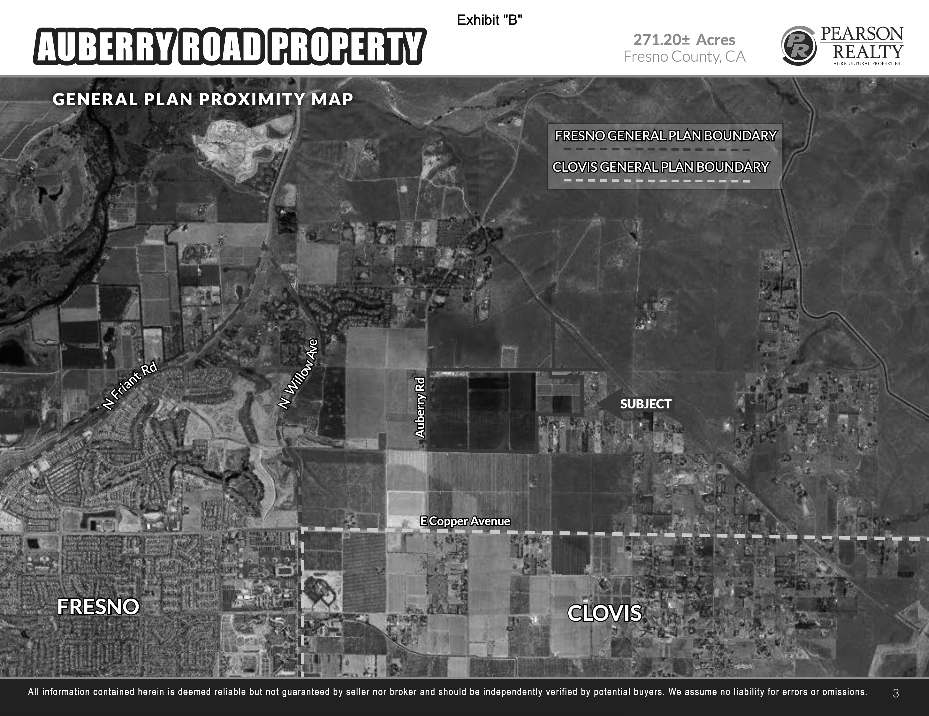 The Real Property is being sold in accordance with the Order dated April 17, 2023, granting the Plaintiff’s Application for the Appointment of a Receiver, in which the Court appointed Dennis L. Bergquist as Receiver and Partition Sale Referee (collectively “Receiver”) for the purpose of, among other things, selling the real property located on the east side of Auberry Road, approximately one-half mile north of Copper Avenue, in Fresno County, which consists of eight (8) parcels totaling 271.20 acres of land, which is legally described in Exhibit A and depicted in Exhibit B, both of which are attached hereto and incorporated herein by this reference (the “Real Property”).