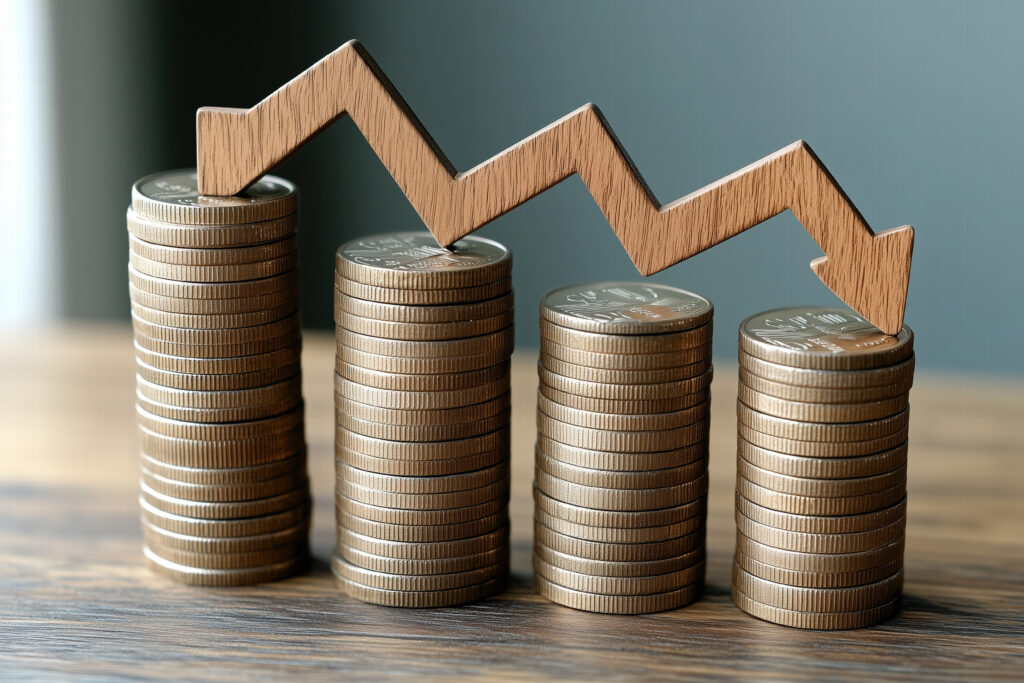 Previous Image Stacked coins with downward trend arrow representing financial decline Generative Ai. Trending down Adobe Stock image Read more » Adobe Stock image