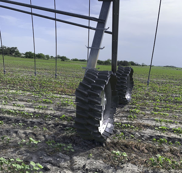 The Shark Wheel was invented to solve all wheel issues in center pivot irrigation. The Shark Wheel SWIFT eliminates flat tires, solves rutting, has 60 second repairs if needed, increases crop yield, and reduces soil compaction. The center pivot/lateral move irrigation wheel leaves a DNA helix footprint in the soil. The front wheel pushes the soil right-left-right, and the rear wheel pushes the soil left-right-left right back where it started!